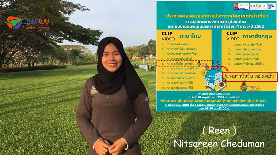 ขอแสดงความยินดี แก่ น.ส. นิสรีน เจะดุหมัน  นักศึกษาชั้นปีที่ 4 สาขาวิชาอุตสาหกรรมการท่องเที่ยวและการบริการ