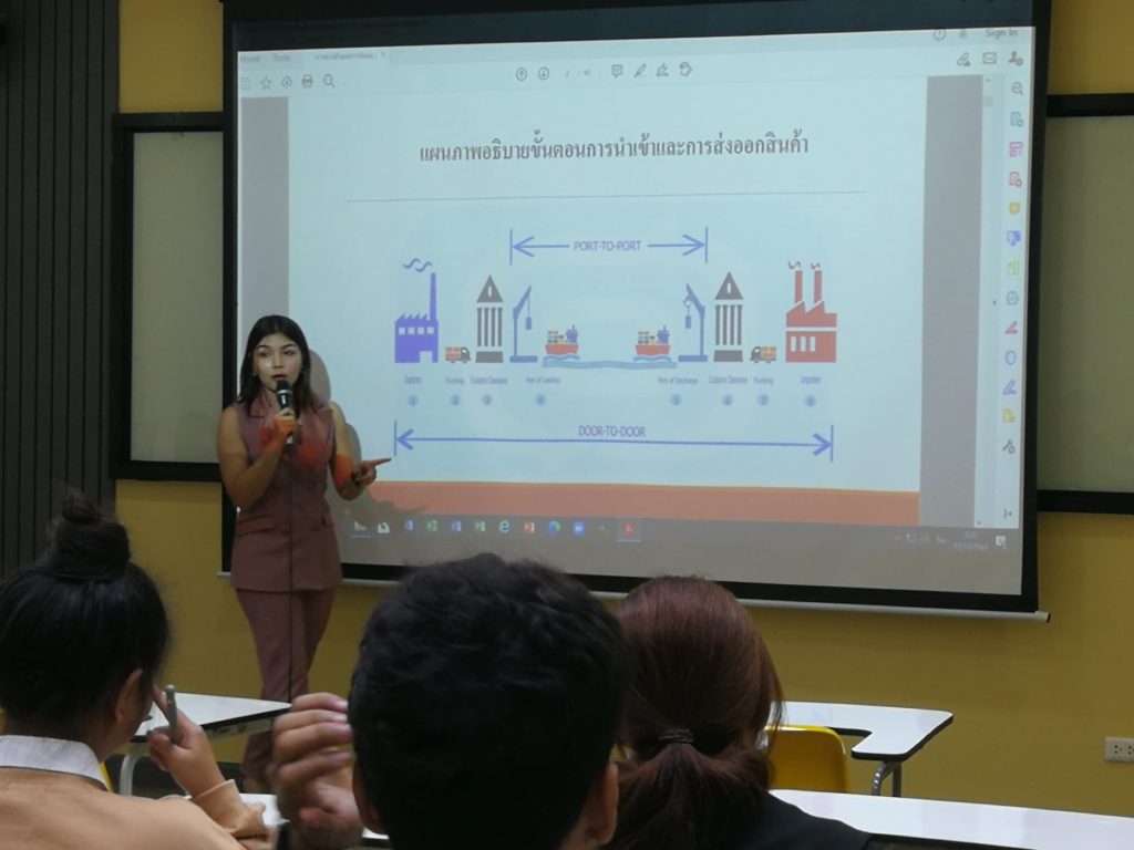 มาเป็นวิทยากรบรรยายในครั้งนี้ ในหัวข้อ “เอกสารนำเข้าและส่งออก”เพื่อให้ความรู้แก่นักศึกษาสาขาโลจิสติกส์ ในรายวิชา LGT60-322 การขนส่งระหว่างประเทศ ประจำภาคเรียนที่ 2/2563