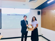 On June 20, 2018, Dean, lecturers, and staff from School of Management welcomed and congratulated “Ploy” Miss Warinthorn Petprapan, a 3rd year student of Business Administration Program, School of Management who won Thailand Championship 2018 on Mountain Biking ‘Cross Country’. An auspicious award from this completion is the King’s Cup.