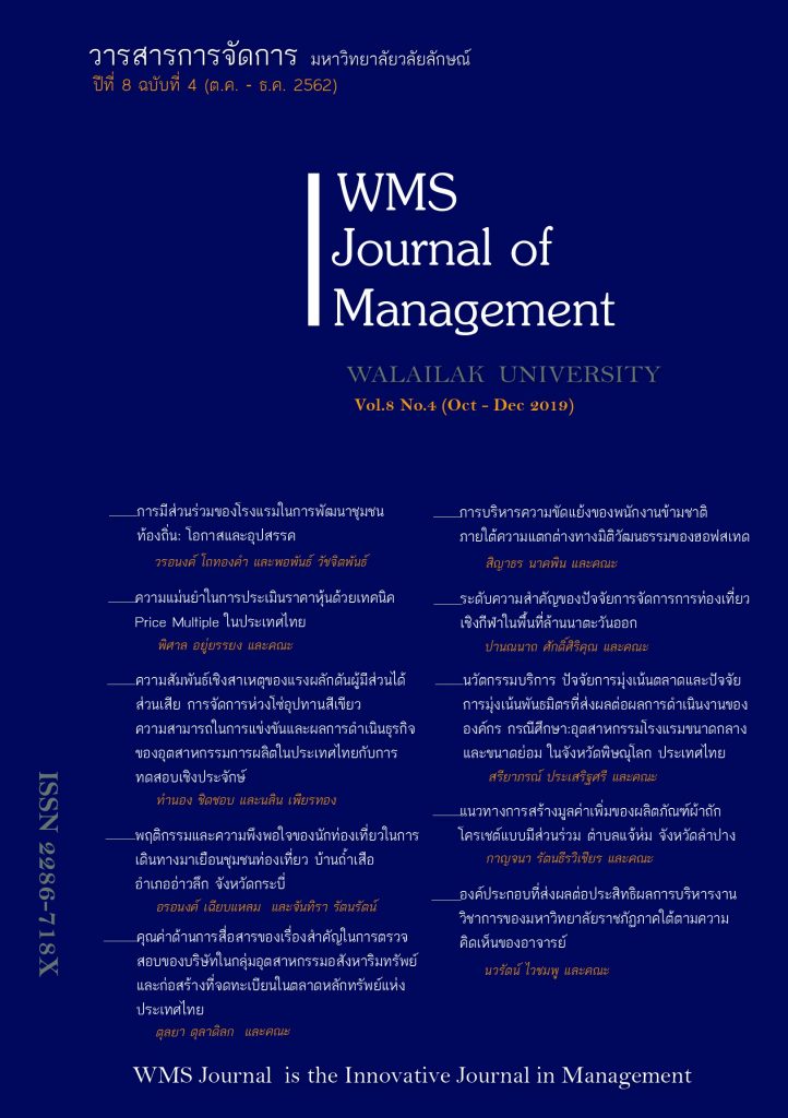 วารสารการจัดการ (WMS Journal of Management) ปีที่ 8 ฉบับที่ 4 (ตุลาคม-ธันวาคม 2562) ออกเผยแพร่ออนไลน์แล้ว